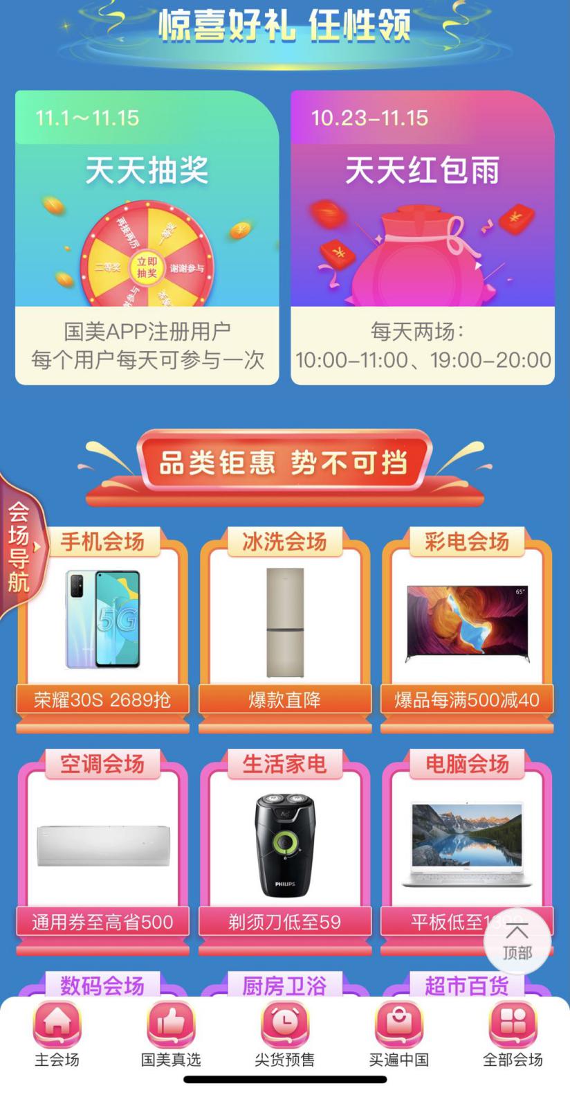 10月28日至11月25日,国美九九会员上线,只需九块九,羊毛就能薅到手;10月30日,“买遍中国”直播杭州站开播,西湖美食便宜还好吃;11月1日-11月3日大促高峰启动,各种红包雨抽奖嗨不停;11月4日至11月6日,万人直播,空前视觉盛宴奉上;11月7日至11月10日,买遍欧洲直播活动,全球好物任你挑;后续还有返场福利等你来拿!