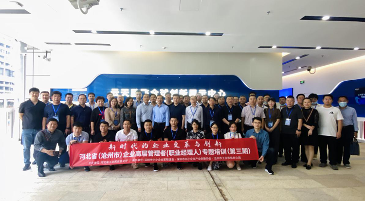 河北省工信厅二级巡视员苏会彬在讲话中指出,从中央到省市高度重视中小企业的发展,沧州市工信局局长亲自挂帅,组织当地企业家来到改革开放的前沿学习交流,感受深圳市改革开放40年来在思想观念、技术管理、科技应用、资本运作等各方面的持续创新,寻找本地企业创新发展的发力点和着力点,希望通过学习交流,碰撞出思想的、技术的、合作的火花。希望沧州市的企业家朋友要充分利用好企业家培训这个平台,不断解放思想、开阔视野、勇于创新再出发,对标先进、正视差距、转型升级快提升,交流信息、寻找商机、招商选资求合作,协同合作、资源融通、产业链供应链相链接,推动企业不断创新、持续发展。
