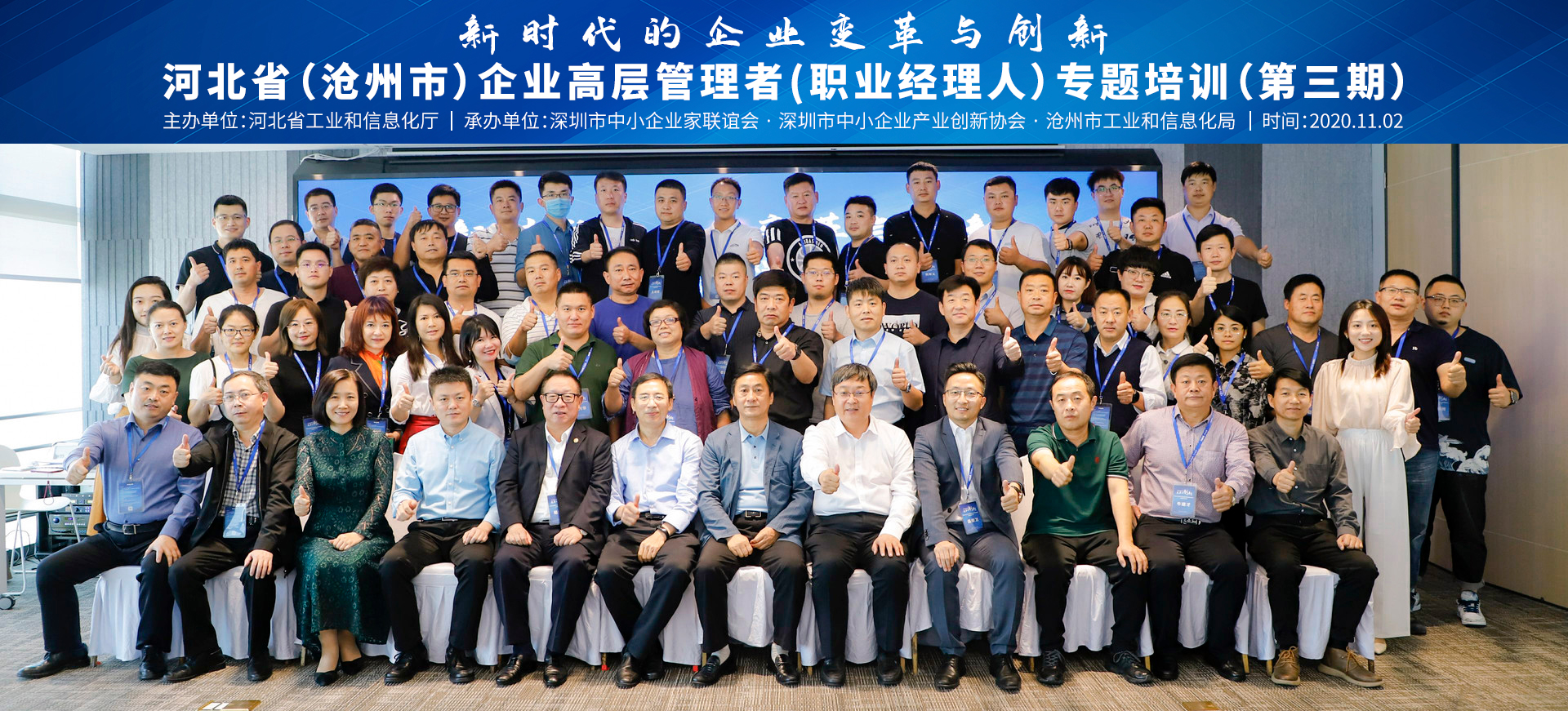 见圳客户端·深圳新闻网2020年11月9日讯 近日,由河北省工业和信息化厅主办,深圳市中小企业家联谊会、深圳市中小企业产业创新协会、沧州市工业和信息化局承办的“新时代的企业变革与创新——河北省中小企业高层经营管理者(职业经理人)专题培训(沧州班)”在深圳隆重开班。来自沧州市产业集群龙头企业、优秀民营企业、“专精特新”企业、培育拟上市企业的董事长、总经理等共计56人参加培训。