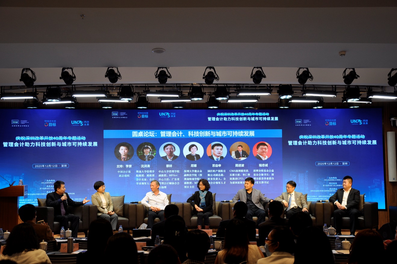 值得一提的是,在研讨会上还举行了圆桌论坛,论坛由中国会计报副总编辑李京担任主持人,暨南大学管理学院教授、财政部会计名家、会计学术领军人才沈洪涛,中山大学管理学院 MPAcc中心主任、广东省管理会计师协会会长助理蔡祥,深圳大学微众金融科技学院(深圳南特商学院) MBA项目主任尼娜,国任财产保险有限公司副总裁、财务负责人苏自申,深圳精英俱乐部主席、单仁资讯集团 CFO、华为前国家财务总监简进波,深圳市铭基金公益基金会秘书长、深圳市慈善事业联合会党支部书记陆忠诚,共同围绕《管理会计、科技创新与城市可持续发展》的主题与现场嘉宾展开深入讨论。(田志强)