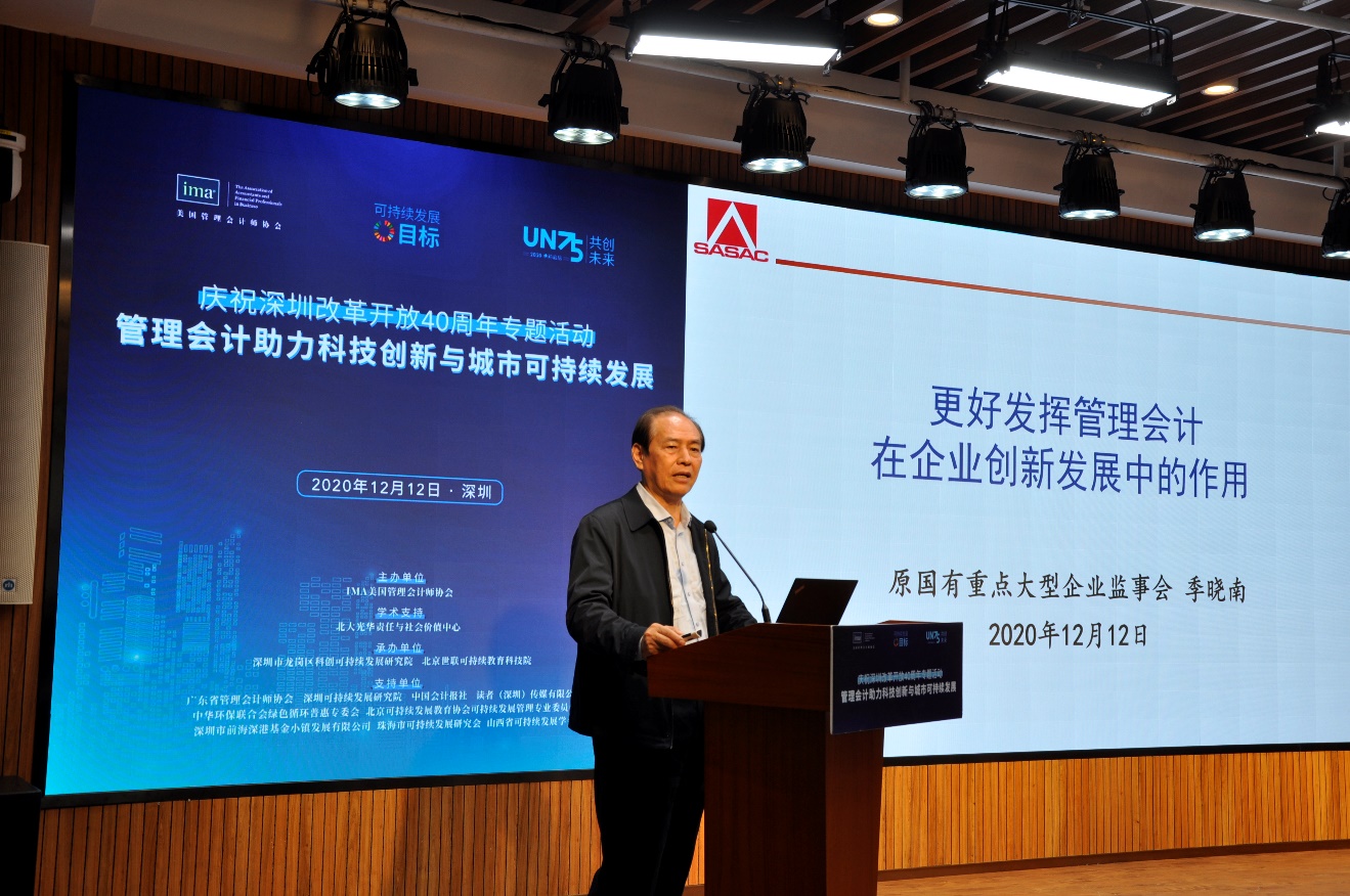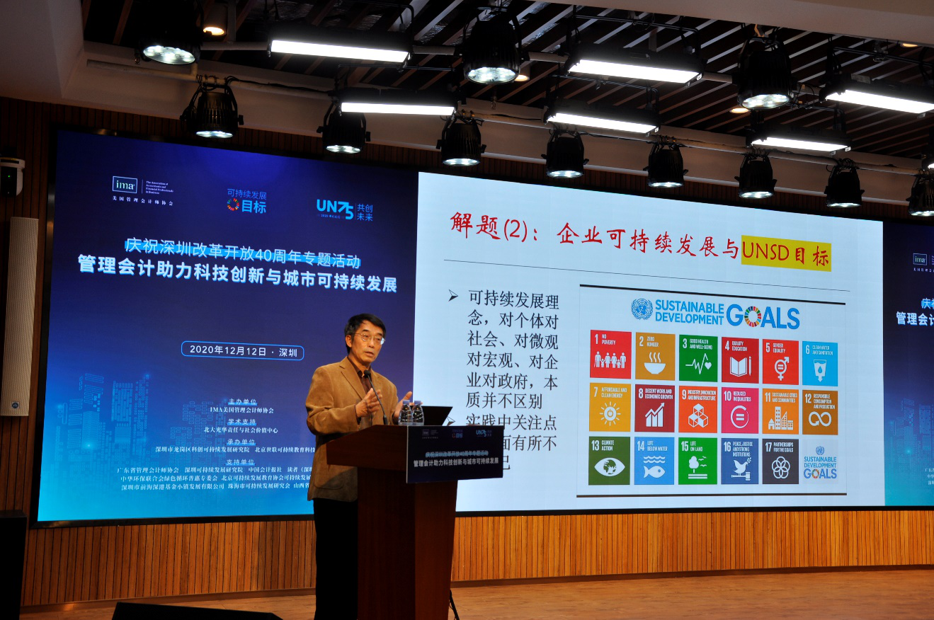 本次研讨会邀请了深圳可持续发展研究院执行院长张亚龙担任主持人,美国管理会计师协会(IMA)副总裁、中国区首席代表李刚为研讨会的开幕致辞,他表示,“今年是深圳特区建立40周年,深圳在改革、创新和可持续发展方面的实践,为我国经济社会高质量、可持续发展提供了良好的先锋模范作用。在当前国内国际双循环相互促进的新发展格局下,我们相聚在改革开放的前沿阵地深圳市,共同探讨如何运用管理会计进一步促进科技创新和城市可持续发展具有积极的意义。”