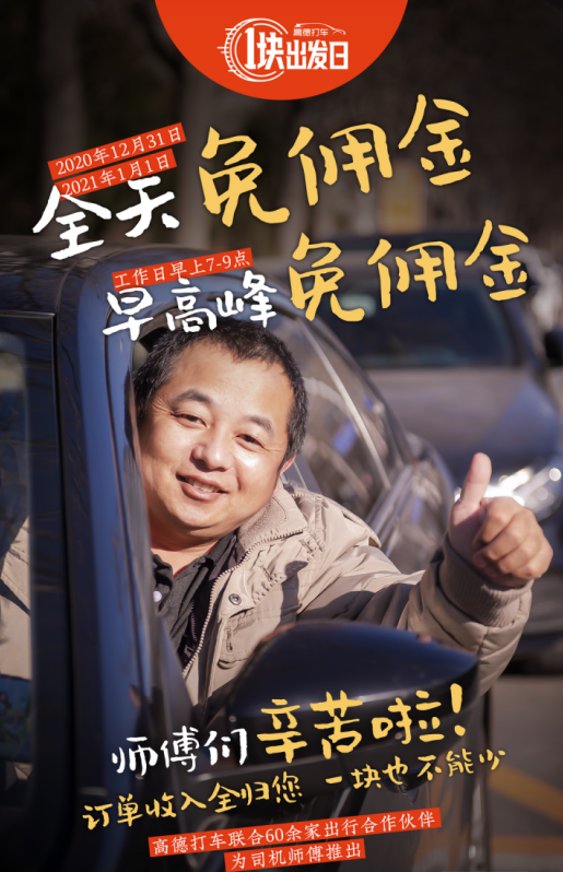 高德打车大数据预计,2020年12月31日、2021年1月1日跨年两日,将成为全年打车的又一高峰。为了让司机多劳多得、安心跨年,让乘客跨年出行打车更快,高德打车联合60多家出行合作伙伴推出“跨年两天全天免佣金”活动,乘客付多少司机就能收入多少。