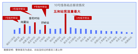 可以看到,10号线客流最大的为五和站。五和站作为10号线与5号线的中转站,方便大量的5号线中转人群。