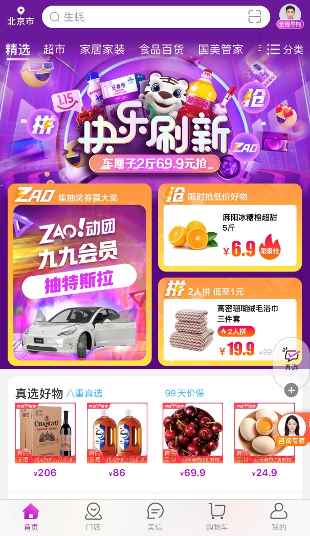 在目前上线的抢先版页面布局来看,“真快乐”APP推出真选好物、快乐直播、九九会员、视频导购等核心版块,均以高品质、超低价的全品类商品贯穿,配合有趣的娱乐玩法,为消费者带来欢乐气氛和良好的购物体验。其中,这次面向九九会员,免费抽取“网红”汽车特斯拉Model3使用权大奖,就是“真快乐”ZAO动团的重磅活动之一。