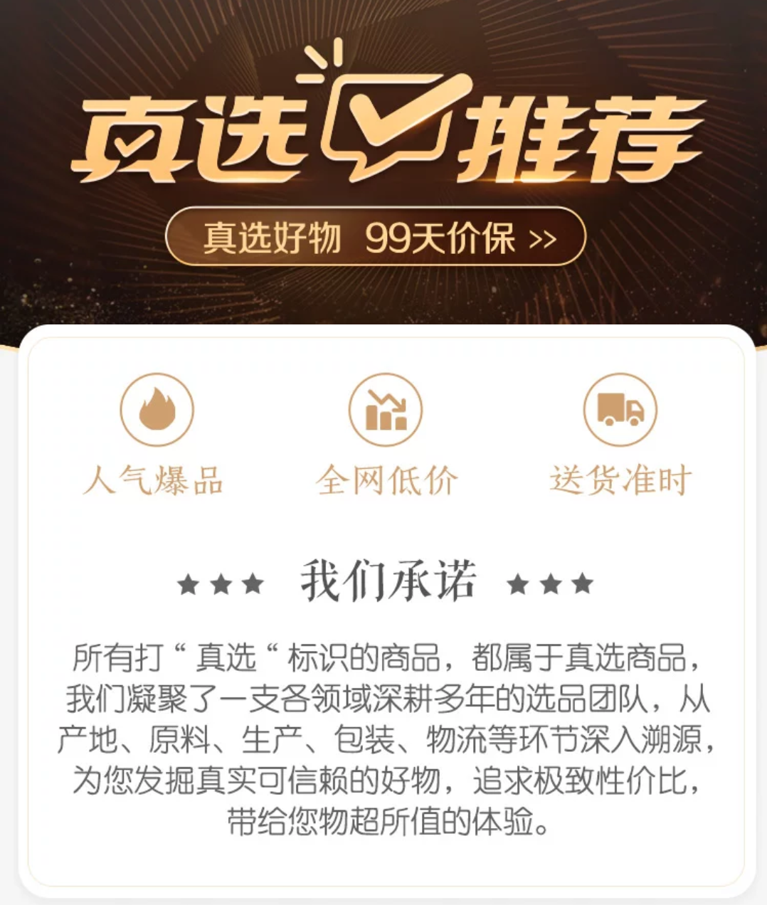 “真快乐”从诞生初始就承担着这份重任,并且依托价美物好的“真选”策略,赢得消费者的心。把“真快乐”这三个简单的字拆分解读,“真”指的是严选商家、真选商品;“快”指的是快送、准时达;“乐”则是商家和消费者能够娱乐卖、娱乐买、分享乐,这是“真快乐”的三大内涵,也是提升消费者购物体验,提升忠诚度和复购粘性的3大关键。