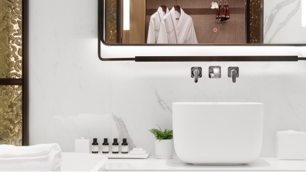 夜幕降临,宾客可慵懒地置身浴缸之中,闭目享受由B&O音响带来的音乐厅般沉浸式体验。或从飘台取过刚刚煮好的香茗,让茶香雅韵充盈唇齿。酒店备好的浴品套装,将让宾客从发丝到肌肤,皆浸润于LE LABO的香氛宇宙,奢宠体验无与伦比。