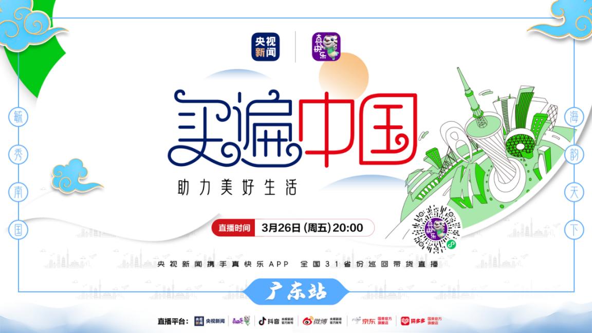 大潮起珠江,弄潮正当时。3月岭南百花盛放,城市地标广州塔上珠江温润的气息扑面而来,“买遍中国”广东站将于3月26日,在这个城市新中轴线与珠江景观轴交汇处正式开启,全国人民都可通过真快乐APP、央视新闻APP、央视新闻抖音官方账号、京东及拼多多国美官方旗舰店等平台观看直播,共同领略岭南特色、广府传承。
