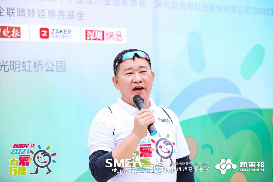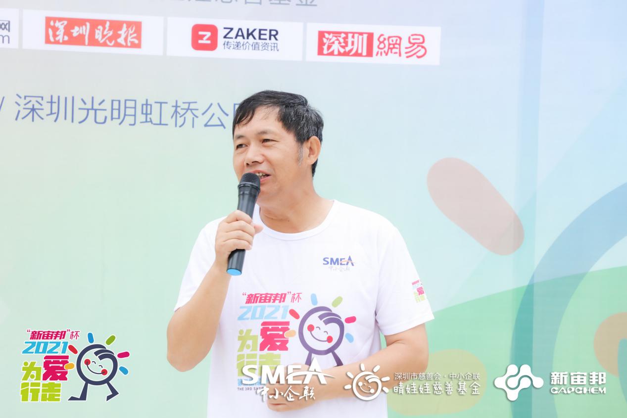 深圳中小企联会长、深圳市杰科电子有限公司董事长黄荣添为开幕式致辞。他表示:“感谢新宙邦对本次慈善公益徒步活动做出的贡献,以及今天参加此次活动的爱心企业家、爱心人士们的大力支持,我代表深圳中小企联感谢大家的参与,今后也希望通过各类活动让更多爱心人士关注我们“晴娃娃”,给更多的孩子送去关爱,能让他们绽放开心的笑容。”