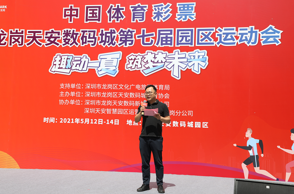 李震副局长在开幕式致辞上表示,龙岗天安数码城从2014年以来坚持每年举办这样的园区运动会,是对龙岗区全民健身工作的大力支持。去年由于疫情的原因,园区运动会被迫停滞,也更让我们深刻的感受到全民健康、全民健身的重要性。今年园区运动会再次举办,也恰逢建党100周年,特别是在国外疫情仍在肆虐的此刻,我们能够在此齐聚一堂,也更能体会到党和国家的强大后盾支撑和保障。
