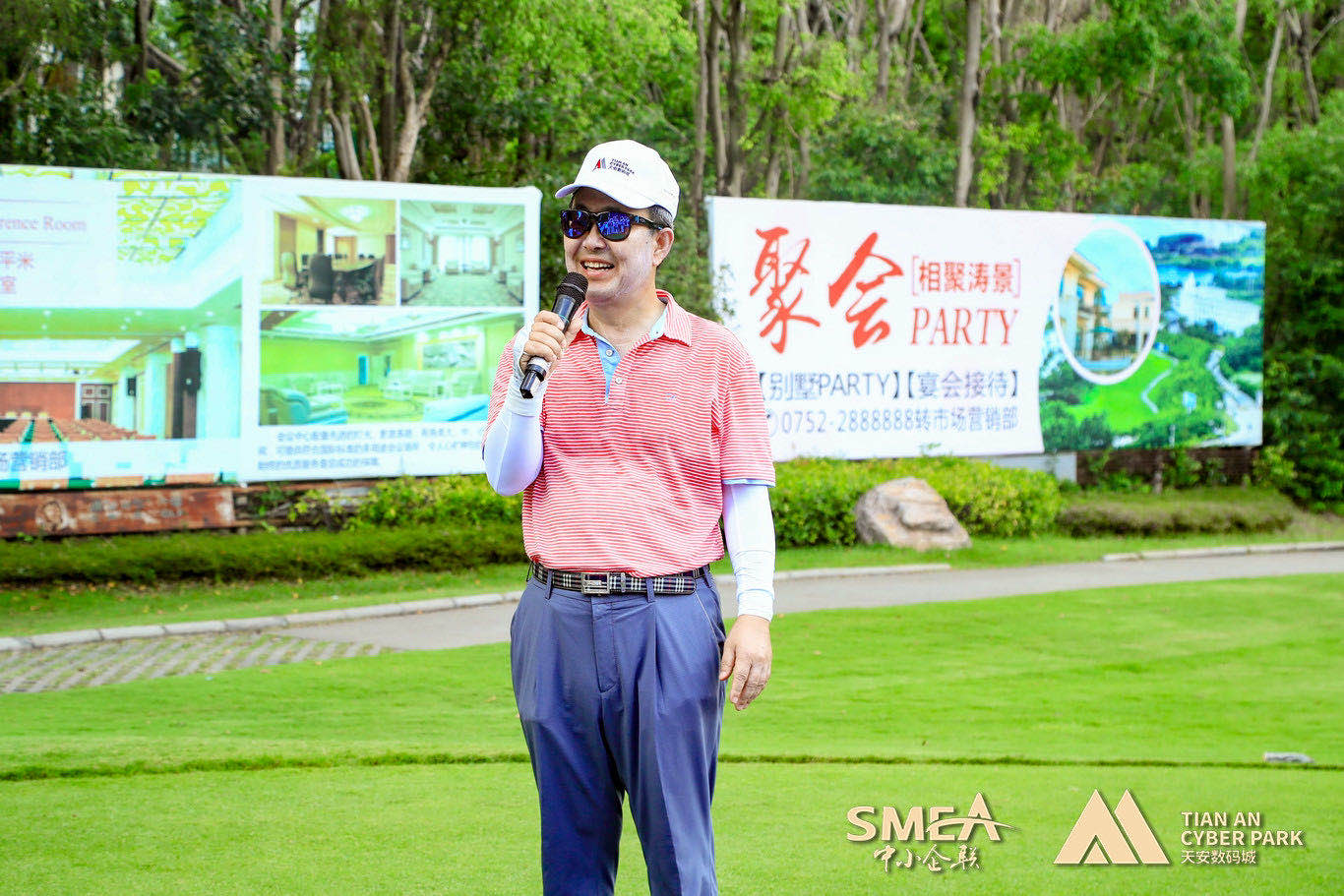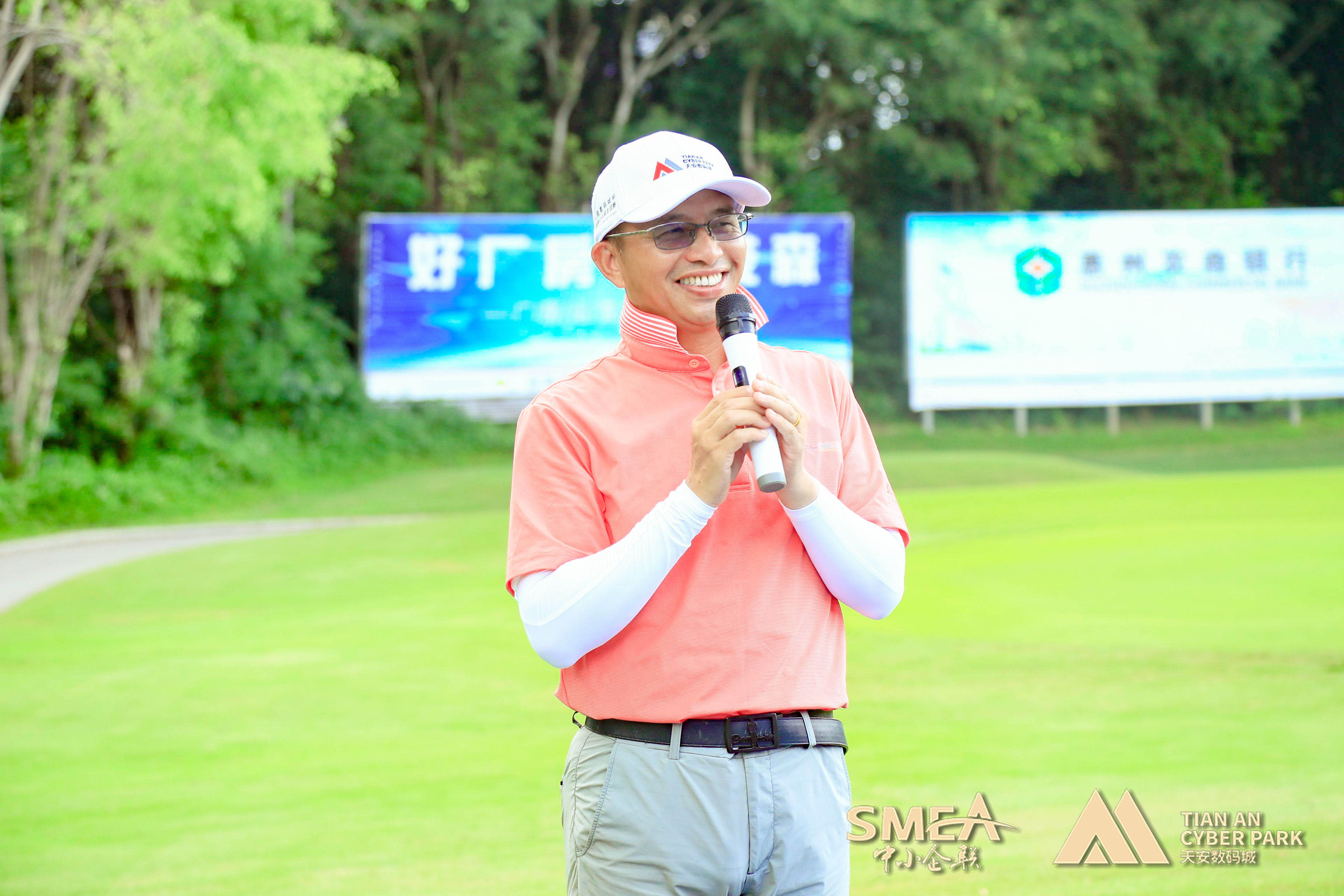 天安数码城集团副总裁、惠州天安数码城董事总经理何文总开球致辞中讲到“中韩友谊渊源流长,今天我们与韩国企业家、粤港澳大湾区各行业领域的精英、嘉宾们齐聚一堂,不仅怀着一颗热爱高尔夫这项运动的心,也为5月19日“2021首届湾区科技产业创新(惠州)金山湖峰会”拉开序曲,希望通过搭建惠州对接粤港澳大湾区在产业创新、人才资本、产学研用等多维度的对话交流与合作平台,深化粤港澳大湾区创新合作,助力惠州与湾区城市间的产业创新与协同发展。同时,他也表示,希望在场的所有嘉宾、企业家们都能快乐挥杆,取得优异成绩!”