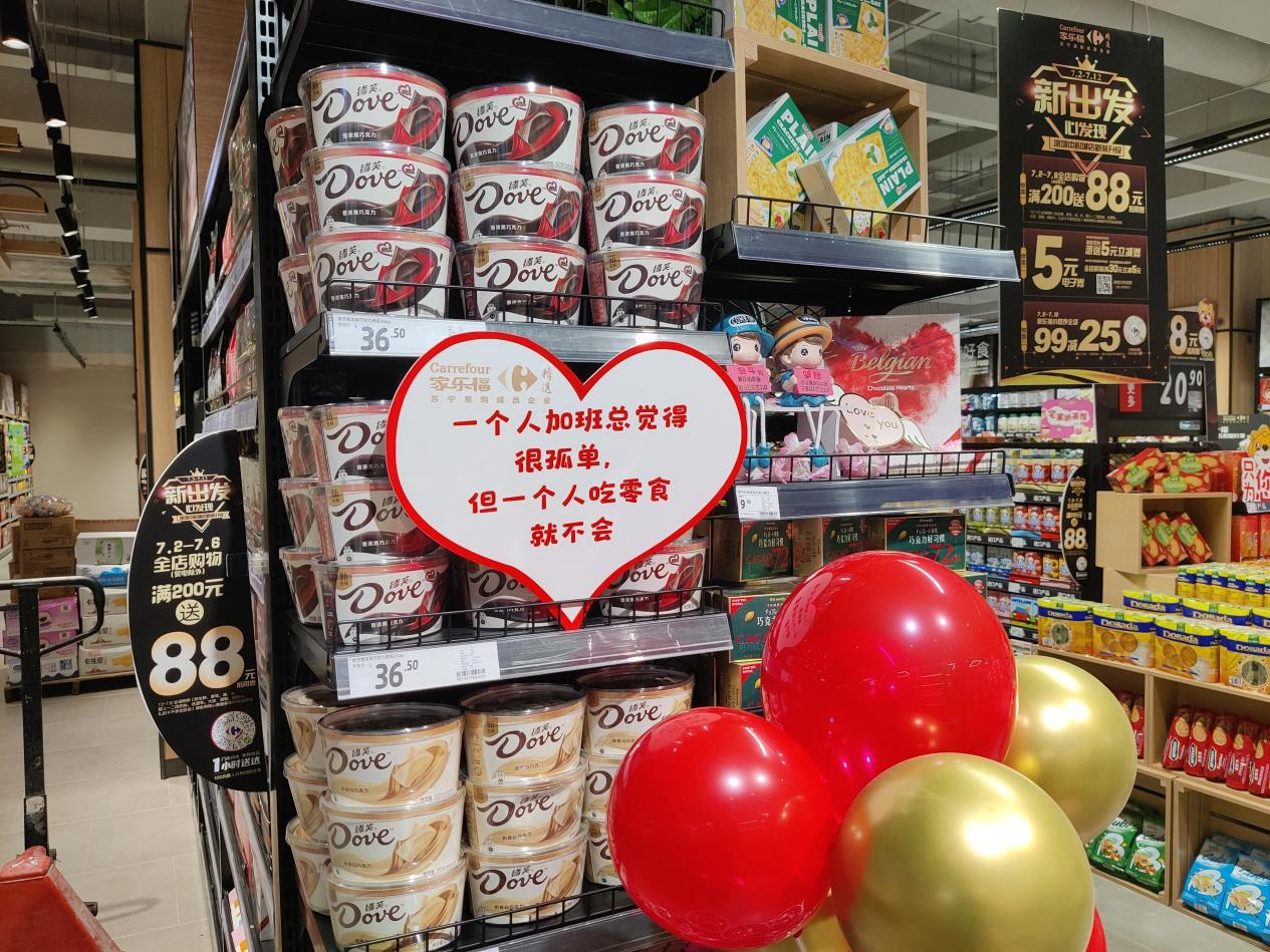 借着盛大开业的东风,家乐福社区品质中心店推出了“优品物语”的趣味逛店活动。该活动,在原本干巴巴的价格指示牌下面增加了诸如,“一个人吃饭很孤单,但一个人吃零食就不会”“隔壁的,你和卷心菜是什么关系?我是反内卷菜系”“樱桃:要我一口能让你大红”“蓝莓:我还爆浆!能让你大紫”等“Z世代”语言,吸引大家来发掘逛超市的趣味。不但年轻的小情侣可以在下班后默契地相视一笑,也吸引到小红书的博主们竞相探店打卡。既赋予了购物一点有趣和人性化,也给这届年轻人动辄发圈、种草的社交型消费加点料。