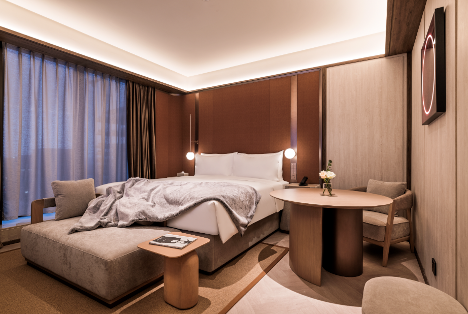 在公区设计上,“新水晶”回归本质与纯粹,采用胡桃木、古铜、玻璃元素,打造更具质感更具高级感的空间氛围。大堂配备的威士忌酒廊,优雅中又带着商务,整体提升水晶品质特质。客房内部,油画般的质感与流畅典雅的线条相结合,干净而明亮,纯粹的质地、静谧的空间,展现了水晶的格调和品味。