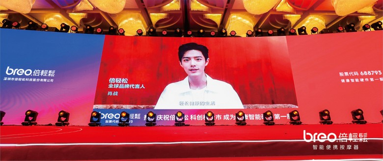 在7月14日倍轻松的上市答谢晚会上,众多核心合作伙伴纷纷发来祝福,倍轻松全球品牌代言人肖战发来贺电,共同祝贺倍轻松成功上市,成为健康智能硬件第一股。倍轻松董事长马学军谈到了倍轻松成立的初心——创造中国品牌,希望通过三个十年将中国品牌倍轻松打造成全球第一品牌。马学军谈到,倍轻松在第一个十年打造品牌基础,第二个十年做到行业第一,第三个十年冲向世界,让中国品牌被世界所熟知。