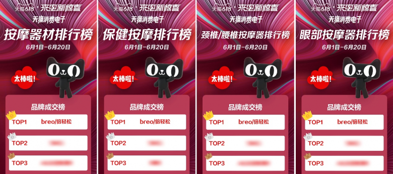 倍轻松的产品地位从创新、科技上很好地体现出来,而更重要的是在消费市场上,倍轻松仍占据了便携式按摩器行业的重要份额。自倍轻松宣布肖战成为全球代言人以来,这家21年高端按摩器品牌在线上销售数据十分优异,在目前中国购物网站巨头的天猫、京东平台荣获多个品类排行榜第一。在618这个重要的消费日节点,倍轻松轻易获得京东开门红,仅4天就达到全网销售额过亿的成绩。不仅在线上,倍轻松布局的线下门店多达150+家,各大机场、高铁站、shopping mall均可以看到倍轻松的身影。据官方数据,倍轻松在2021年上半年天猫平台荣获眼部按摩器单品品类排行榜第一如此以来,可以说倍轻松是便携式按摩器线上平的领军品牌。