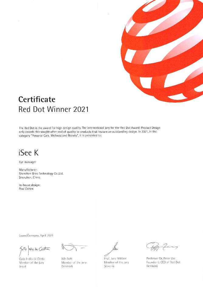 2021年倍轻松眼部按摩器iSee K荣获红点设计奖