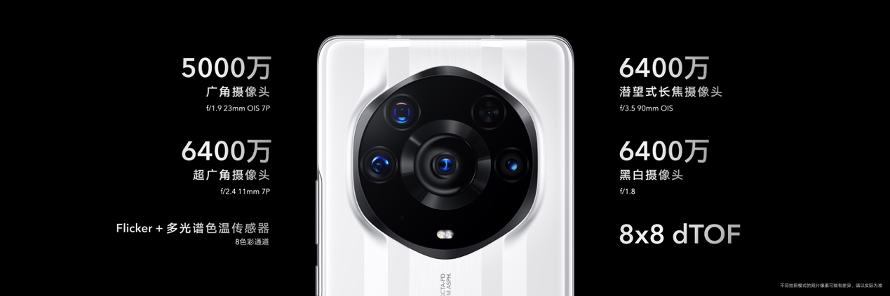 影像方面,荣耀Magic3至臻版打破手机镜头天花板,突破性地采用了多主摄设计。在与荣耀 Magic3 Pro采用同样的业界领先6400万潜望式长焦镜头和6400万黑白镜头基础上,荣耀 Magic3至臻版将5000万像素超大底主摄升级为索尼 IMX700,传感器尺寸达到1/1.28英寸,拥有业界领先的感光度(ISO),成像解析力、暗光拍摄能力更强。而超广角微距镜头,也从1300万像素,升级为业界领先的6400万像素126°超大广角微距镜头,能完美呈现广阔空间中整个建筑、地标,亦能捕捉2.5cm近距离下的微小细节,提供肉眼无法看到的创意视角。多主摄计算摄影,实现多焦段高清影像。