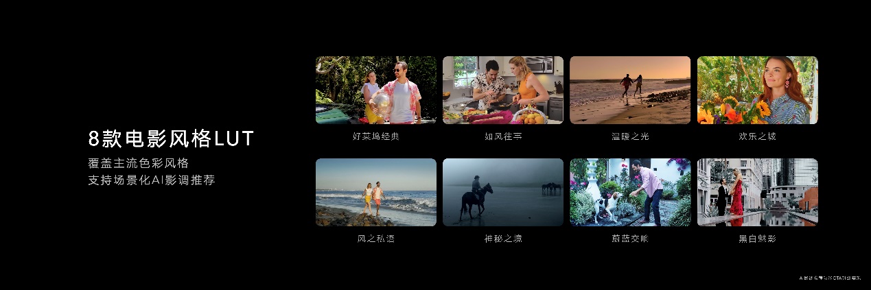 结合荣耀 AI影像技术,荣耀Magic3系列推出 AI影调推荐功能(此功能后续通过 OTA升级支持),识别场景元素,智能匹配并推荐适合风格的LUT影调,用户也可以通过专业模式下录制Log视频,再通过相册视频剪辑功能自行添加喜欢的 LUT影调。荣耀 M agic3系列实现了电影工业视频流程 AI化,使专业走向大众,让用户随手便可拍出电影大片,充分表达自己的情绪与审美。