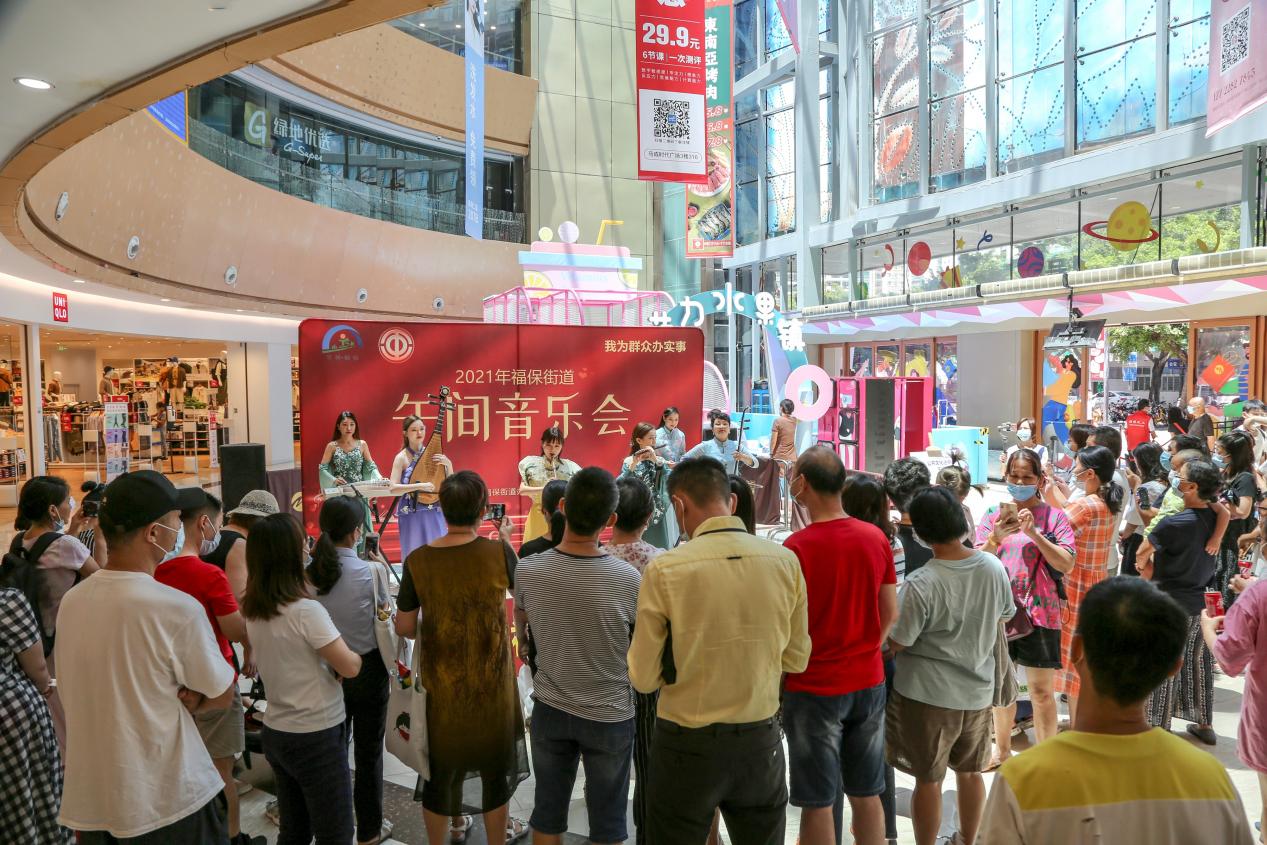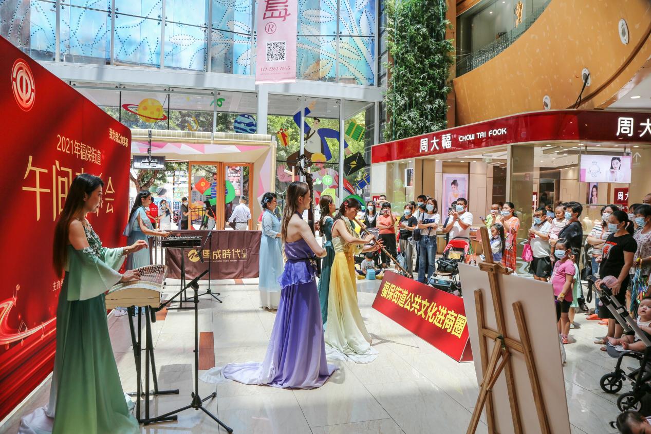 读特客户端·深圳新闻网2021年8月20日讯 (记者 蔡凯伊)8月20日,2021年福保街道午间音乐会在马成时代广场举办,现场独奏与合奏齐鸣,二胡、琵琶、笛子、箫、葫芦丝、扬琴、古筝等乐器倾情奏响,为辖区职工和前来商场购物的群众带来轻松美妙的音乐享受。