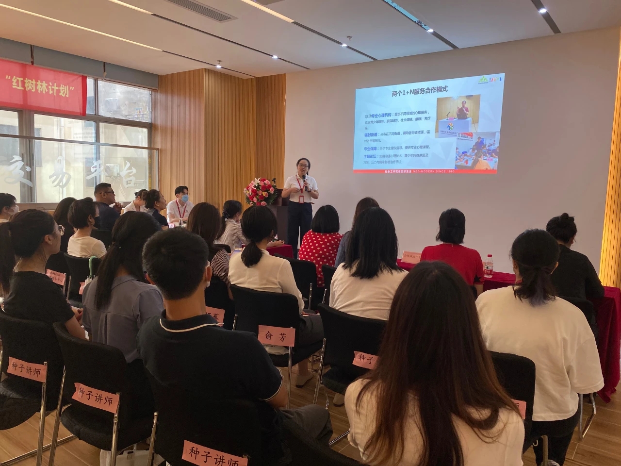 读特客户端·深圳新闻网2021 年8月27日讯(记者张俊达) 26日下午,由福田区社会建设专项资金资助,深圳市新现代社工服务中心举办的“汇聚专业力量,共筑心灵防线”——福田区社会心理服务体系建设“红树林计划”项目成果发布会暨主题研讨会在福田社会要素交易平台路演厅举行。本次活动邀请深圳市新现代社工服务中心专业副总干事韦晓冬、深圳市心理咨询行业协会NLP专业委员会副主任黄国荣以及合作站点、合作机构、种子讲师、心理咨询师和专家代表们30余人参加。