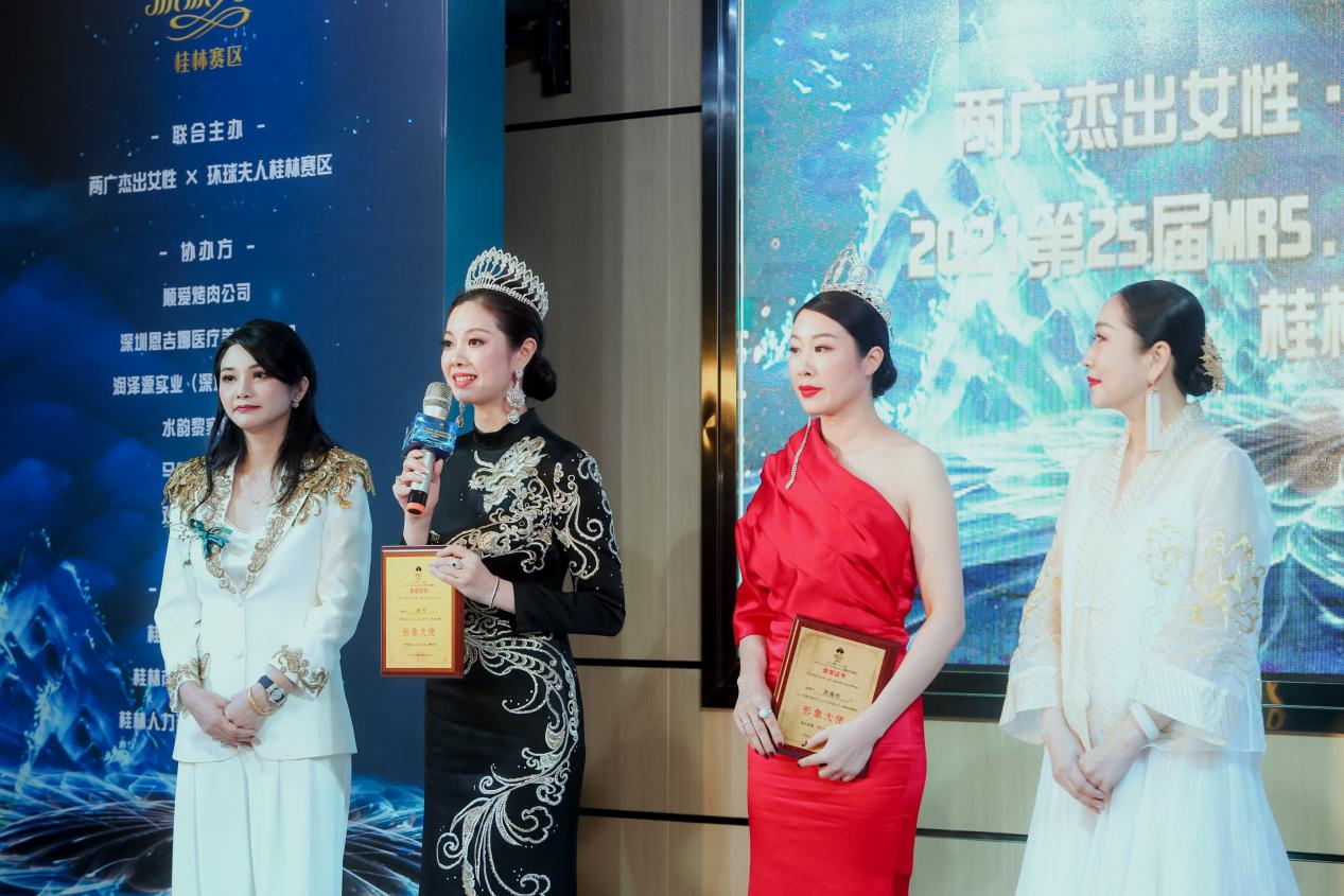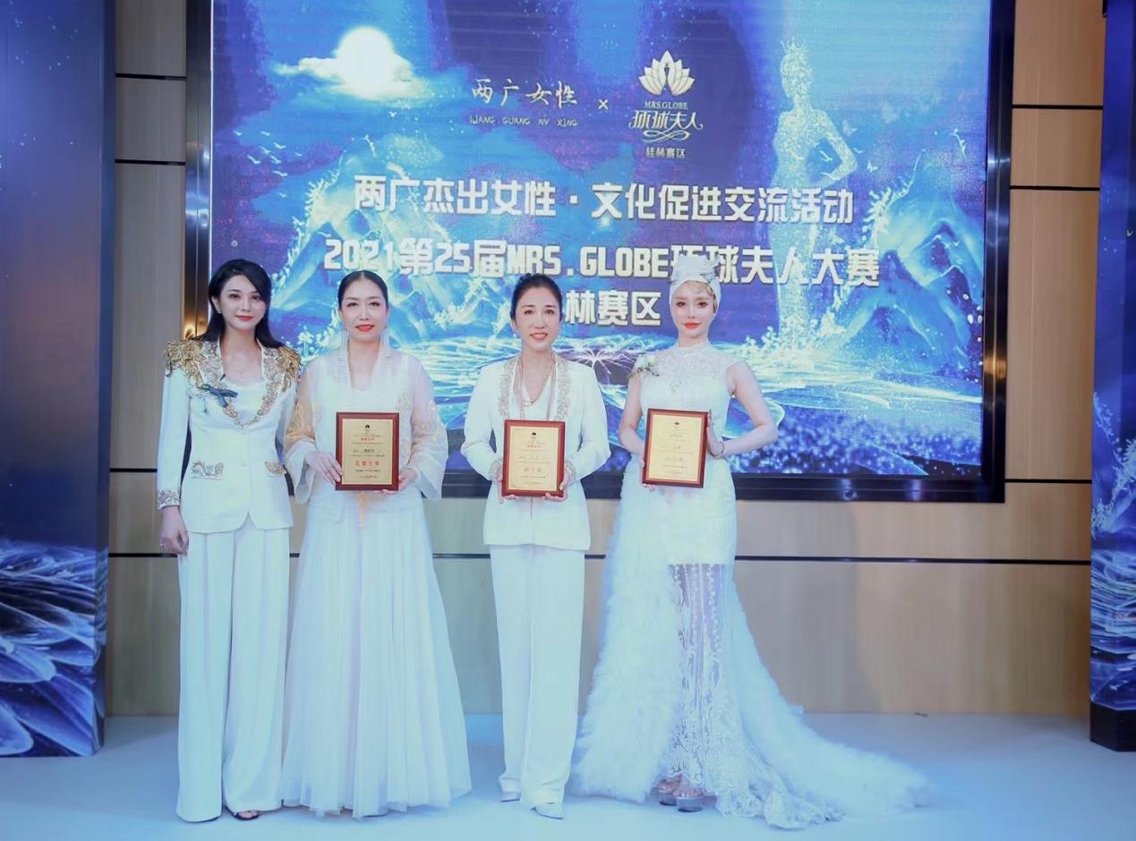 活动现场除了多位嘉宾的热情致辞分享,同时还举行了“2021第25届MRS.GLOBE环球夫人大赛桂林赛区组委会成员授牌仪式”。