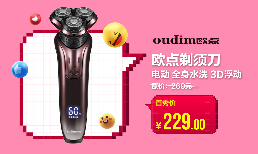 在女生眼中,白白净净的男生更具吸引力,而胡子拉碴的男生难免会被贴上不讲卫生、不爱干净、不注重自己形象的标签。鉴于此,“真快乐”APP为男同胞们带来了一款实力硬核的欧点电动剃须刀,它采用了双环圆弧刀网,让剃须更快、更净、更爽。这样的心水好物,首秀价只要229元,助你秒变小鲜肉。