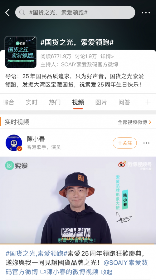读特客户端·深圳新闻网2021年10月22日讯(记者 田志强)近日,索爱广州25周年庆领跑活动在网络持续发酵,引爆舆论热烈关注。作为音频数码行业首个登录广州塔的国货品牌,索爱25周年领跑活动吸引了大量的媒体和达人齐聚广州塔,索爱品牌和产品热度以广州为中心迅速向周边地域传播。在索爱冠名高铁、签约陈小春夫妇为品牌形象大使等品牌事件的叠加聚合效应下,#国货之光,索爱领跑#等话题和热度持续传播至各社交平台,各个类别KOL相继为索爱发声,仅在微博平台的话题阅读量已突破数千万。