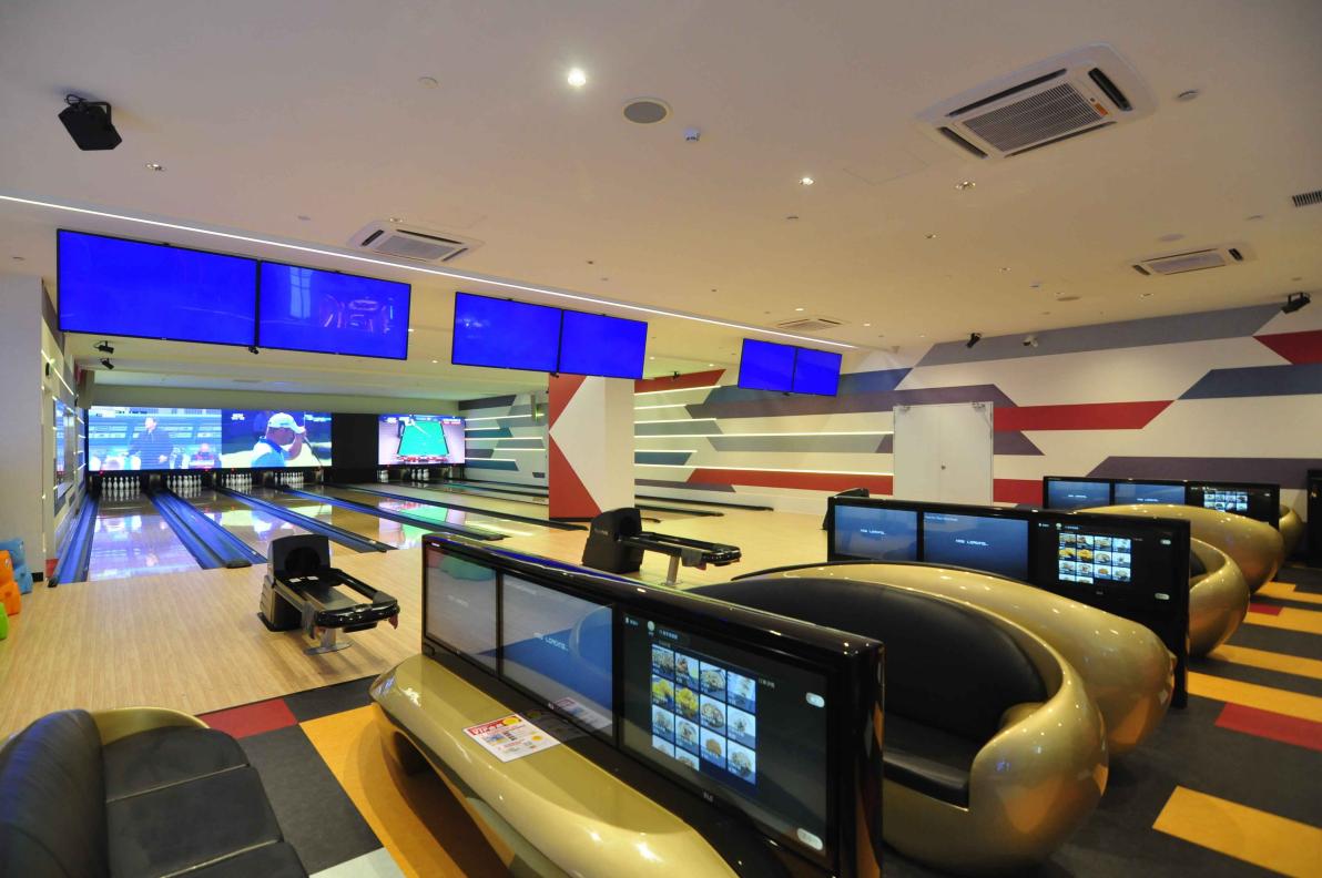 保龄球区域,朗玩的保龄球采用了美国Brunswick公司最新的保龄球机。在放置保龄球瓶的上方墙面上,设置了放映各种运动、音乐节目的大屏幕。四周设有的摄像镜头能够全方位捕捉玩家们投球瞬间,在大屏幕上可以看到这些精彩瞬间。采用了镭射光线等技术的华丽活动(月光投球游戏)每小时都会进行一次,闪耀炫酷的设计会颠覆玩家们一直以来对于保龄球的认知!