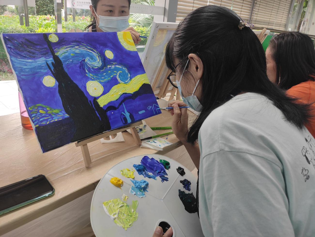 温馨的环境,融洽的气氛,专业的老师,友好的同伴,妈妈们度过了一个个美好的下午。尽管妈妈们都是零基础,但全情投入的专注,不仅释放了压力,更是打开了一扇通往油画艺术的小窗。爱自己,爱生活,才能更好地爱家人,本次油画班持续开展约两个多月,妈妈们更好地享受属于自己的油画时间,学有所获。