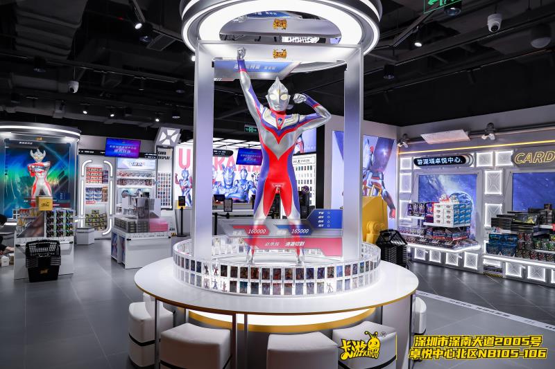 卡游动漫一贯以来打造亲子互动体验的愿景,在“趣发现、去成就”的道路上始终前进,不断为每一个卡牌爱好者和亲子家庭带来更多的欢乐、营造更多的幸福和构筑更多的温暖。作为城市首家线下直营店的卡游北京富力广场店和卡游深圳卓悦中心店就是典型代表,他们不仅完美继承了如“奥特曼1:1等身立像圆桌”和“英雄对决专区”等兴趣社交区域,还配合商场“新时尚、新生活、新主张”的理念,在多种玩法的加持下,将艺术、美学、生活融于一体,拥有无限的探索可能。