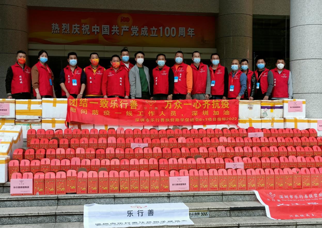 读特客户端 ·深圳新闻网2022年1月21日讯(记者 张俊达)1月21日下午,深圳市乐行善扶贫助学促进会在会长周泽孟带领下,向清水河街道、东晓街道各捐赠一批慰问一线防疫人员物资,给一线防疫人员和街道社区工作人员提供后勤保障,并向辛勤奋战在防疫一线上的全体勇士致以最诚挚的问候和感谢。罗湖区委常委、统战部部长黄剑峰出席清水河街道捐赠仪式。