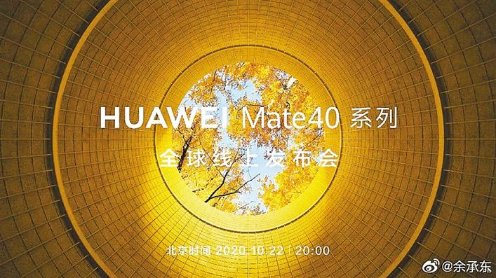 华为消费者业务总裁余承东在10月10日宣布,华为将于北京时间10月22日20时举办全球线上发布会,他称,这将是“史上最强大的华为Mate”。
