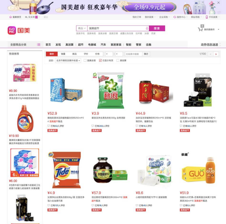 7月初,国美APP上线京东数万个日用百货商品,并分发到各个国美社群中。