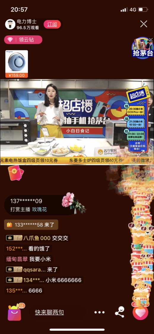 以苏宁为例,2月27日零点苏宁易购正式上线24期分期免息政策,数据显示,首日订单量就实现同比增长7倍。值得一提的是,疫情之下,直播购物火热,苹果、戴森等爆款直播平均每秒下单9件,单场同时在线人数超300万。
