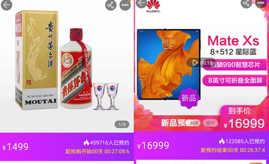 今日10点,飞天茅台再次在苏宁易购开售,售价1499元,而就在茅台开售后10点08分,华为最新折叠屏手机Mate Xs同样在苏宁开售,售价更是达到16999元。