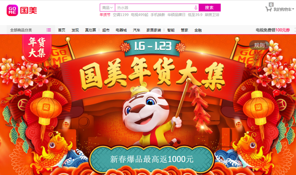 1月6日-23日,国美年货节厨房卫浴精品助你在除夕夜游刃有余,把你的爱传递给家人。