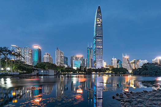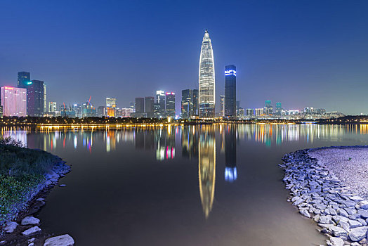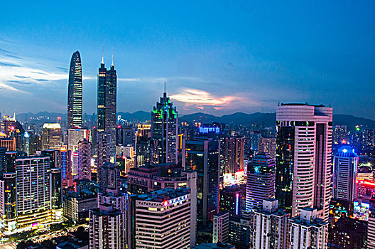 华灯初上,深圳湾畔霓虹点缀下的繁华,展现出与白天不同的景色。灯光聚集处,是城市美好的印记。
