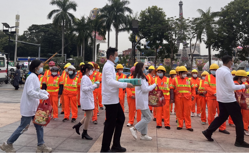 人间烟火气,最抚世人心。1月18日,近百份暖心又暖身的椰子鸡套餐在益田假日广场的环卫工人手中传递。这是爱心企业“四季椰林”第四年将春节祝福提前送到城市英雄的手中。同时,深圳6万名左右环卫工人“一分钱”吃椰子鸡的活动也在同步进行中。