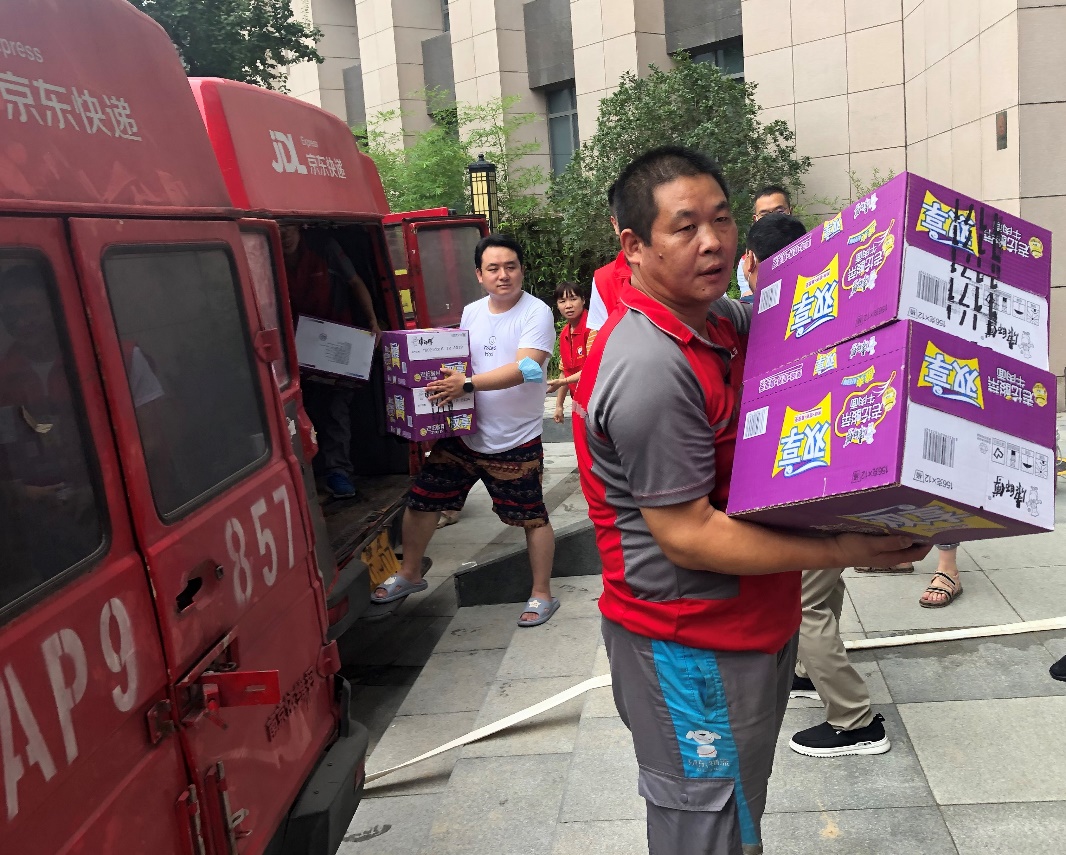 在河南汛情发生后,京东第一时间行动,紧急筹集、运送多批救援物资到达受灾地点。