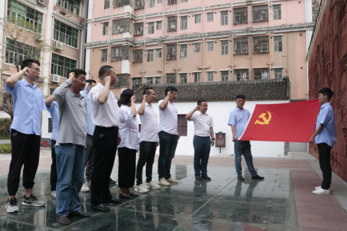 近日,在中国文化名人大营救纪念馆,党员们面向党旗,高举右拳,重温入党誓词,缅怀革命先烈,追忆红色历史。