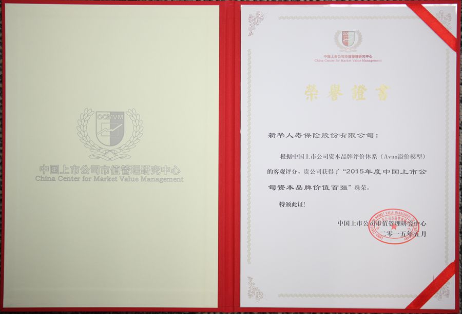 中国上市公司市值管理研究中心发布的”2015年度中国上市公司资本品牌价值百强“中,新华保险赫然上榜!