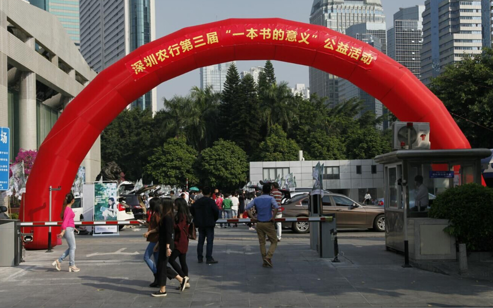深圳市实验中学的车尾箱展位前围满了前来换书的人