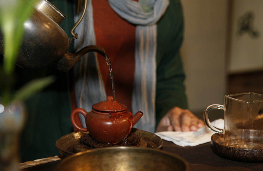 周三茶会的经行禅茶创始人汪林生在进行禅茶表演