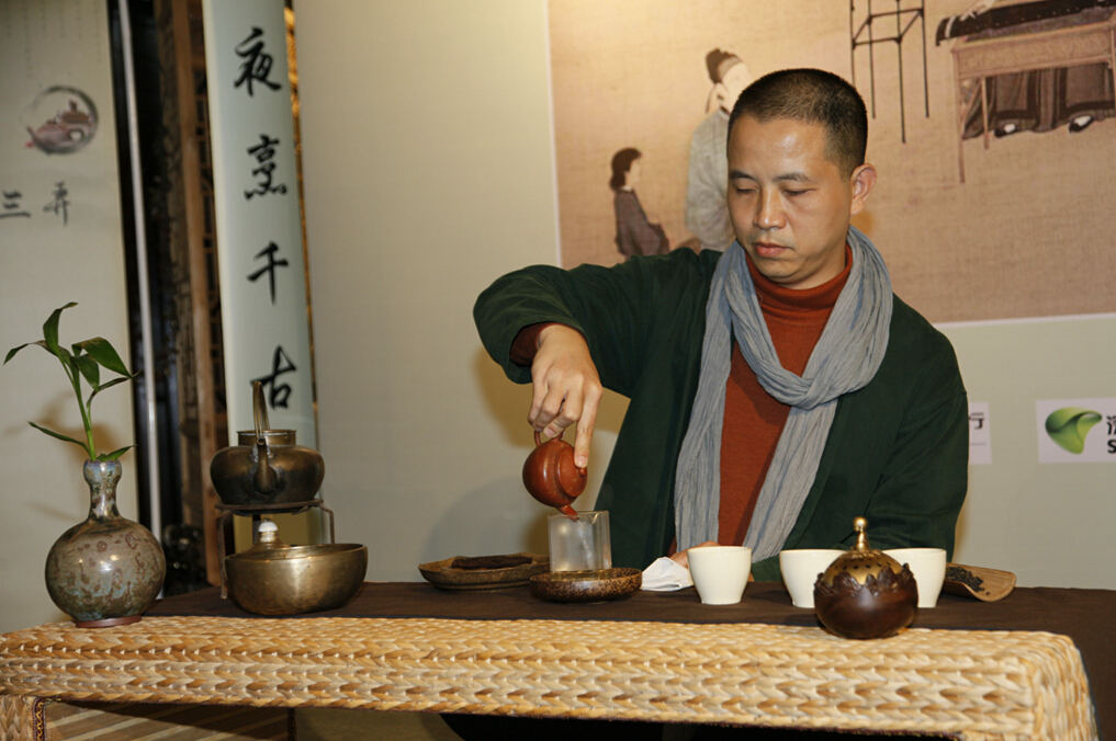 经行禅茶创始人汪林生在进行禅茶表演