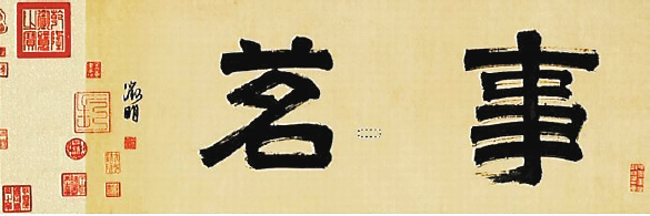 此时,这幅文徵明手书的“事茗”——苍劲蕴藉的隶书横幅正悬于深圳龙华六度车栈二楼善济堂茶禅会馆入门处,作为近日举行的“事茗——东一书画雅集”的展题。
