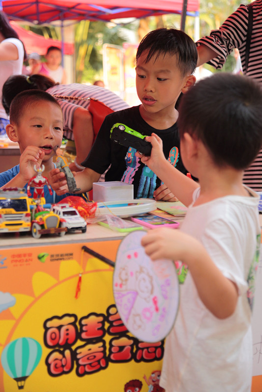 7月9日下午,一场有趣的“萌主”儿童创意市集在彩田村中心广场举行,40多名小朋友在家人的陪同下在这里鼓起勇气挑战自己。