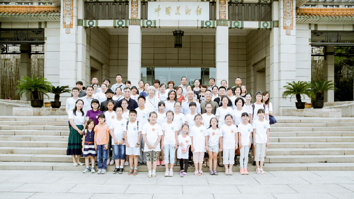 图说:中国美术馆馆长吴为山、副馆长胡伟与参加活动的嘉宾、环卫子女及家长合影留念,表达对 “2016环卫子女成长计划”项目的支持。