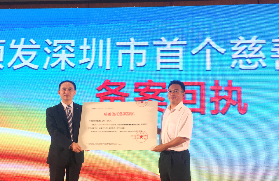 9月5日,在深圳市举办的“中华慈善日”主题活动上,中国平安作为唯一一家企业,获颁首个慈善信托备案证书。