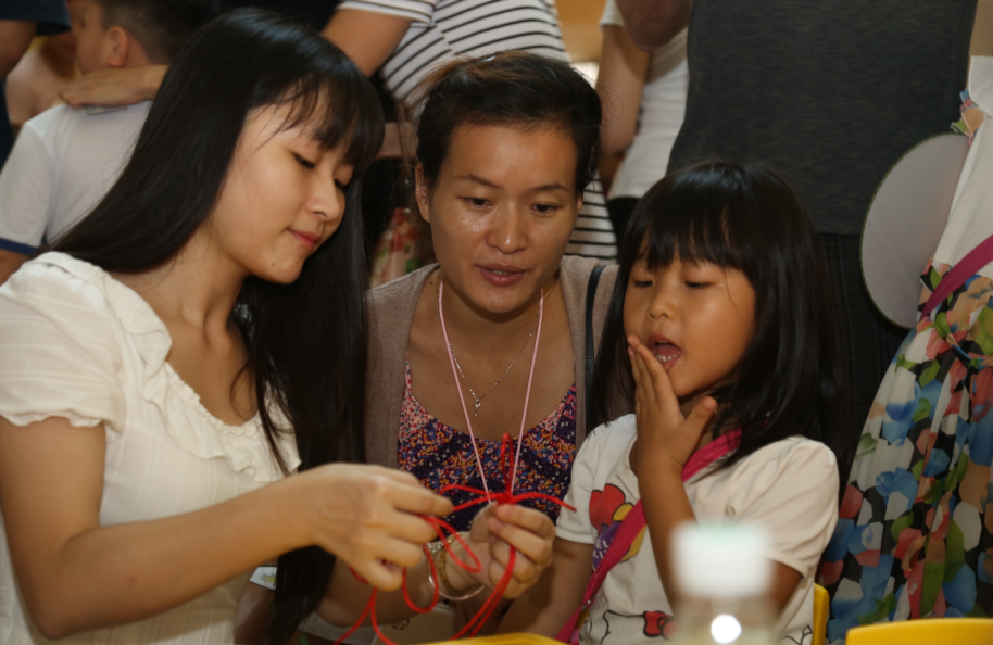 此外,中国结、素面扇绘画、剪纸等体验区域,也挤满了小朋友。家长们用手机记录下孩子体验制作的过程,对老师们的现场演示赞不绝口。
