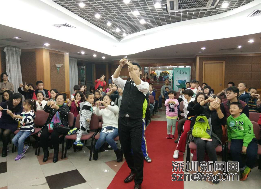 深圳新闻网讯 “哇,太神奇了,魔术师是怎么做到的呢?” 11月27日下午,80多个小朋友和家长们参加了由中国农业银行深圳分行和深圳新闻网举办的“小小魔术师”亲子体验活动。小朋友们不仅体验了魔术的神奇,还跟着魔术师学习利用生活中的物品进行魔术表演,活动现场气氛高涨,笑声和掌声时时爆棚,小朋友们嗨到不想走。