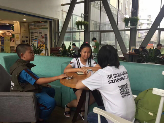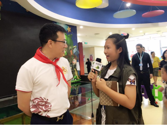 6月1日,在智慧亲子陪伴组委会主办的“六一联欢会”上,来自书香小学的黄思怡和阳光小学的张家宇两名深网小记者对七巧国教育科技有限公司常务副总经理 王耀强、深圳狮子会会长 施建永进行了专访。(曹园芳)